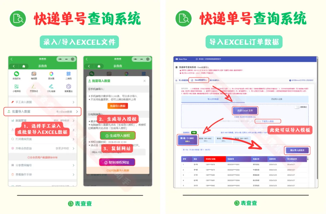 小程序会按照每批300行依次导入(每个文件最多3000行);