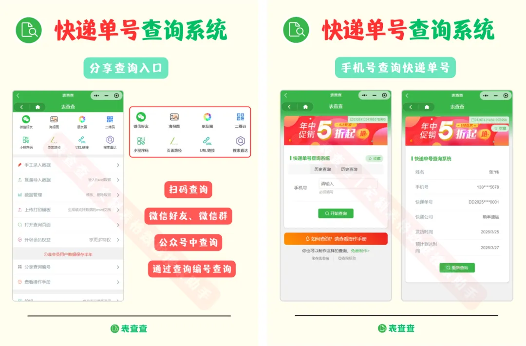 不管是电商发货还是仓储管理,用表查查导入 Excel 数据、设置查询条件、生成二维码,就能让客户自助查询快递信息。