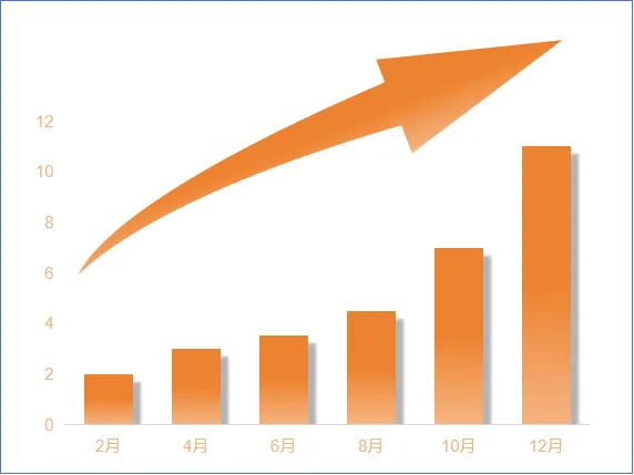再插入一个向上的箭头,突出业绩上升的趋势。