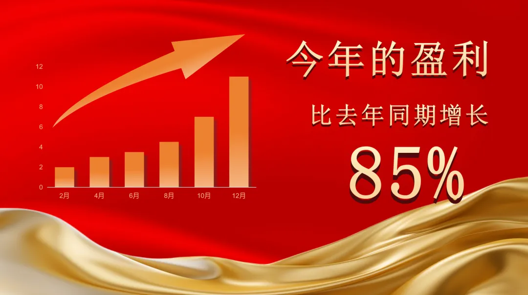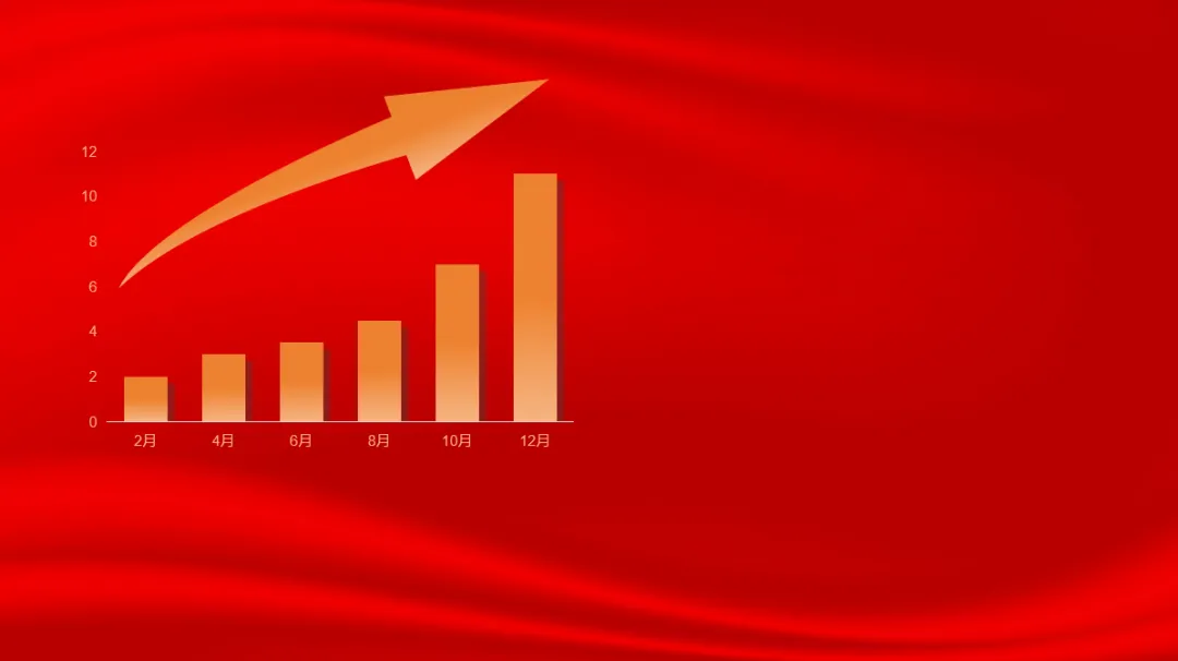 (1)加上创意柱状图体现业绩增长迅猛,红色作为背景凸显喜庆;