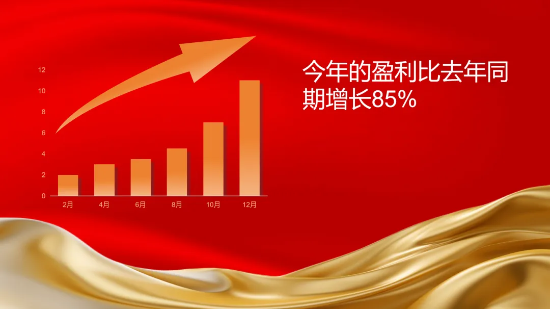 讲真,公司盈利猛增,我们小员工也会跟着沾光。所以,我要发挥我的技能和想象力,给老板做个喜庆大气的PPT发言背景,让老板高兴!