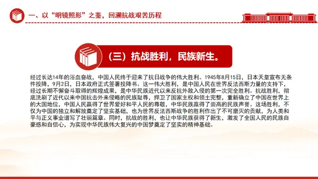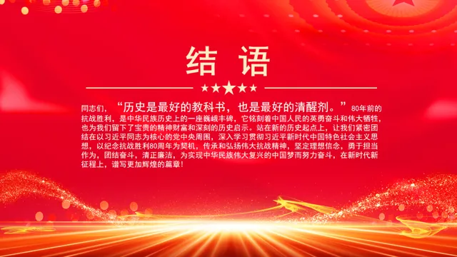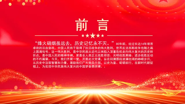 >【PPT+讲稿】抗战胜利80周年党课:以史为鉴筑忠魂砥砺奋进谱新篇(25页)