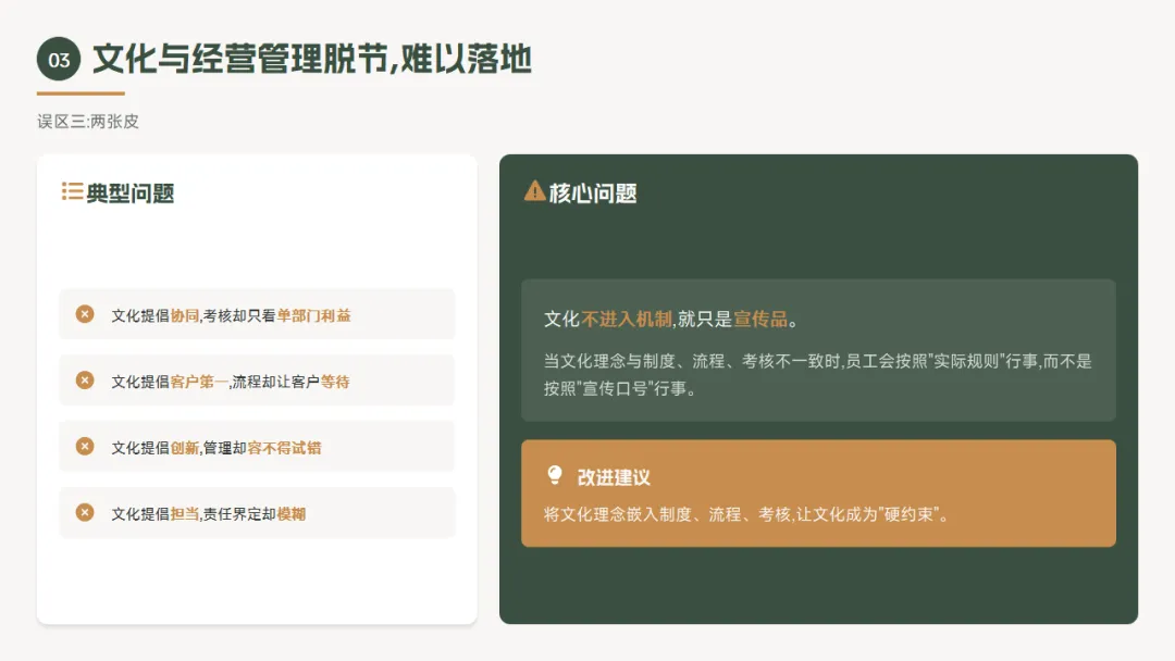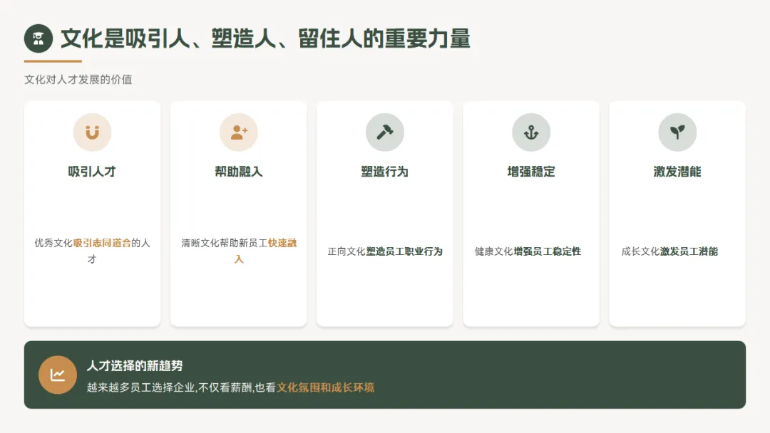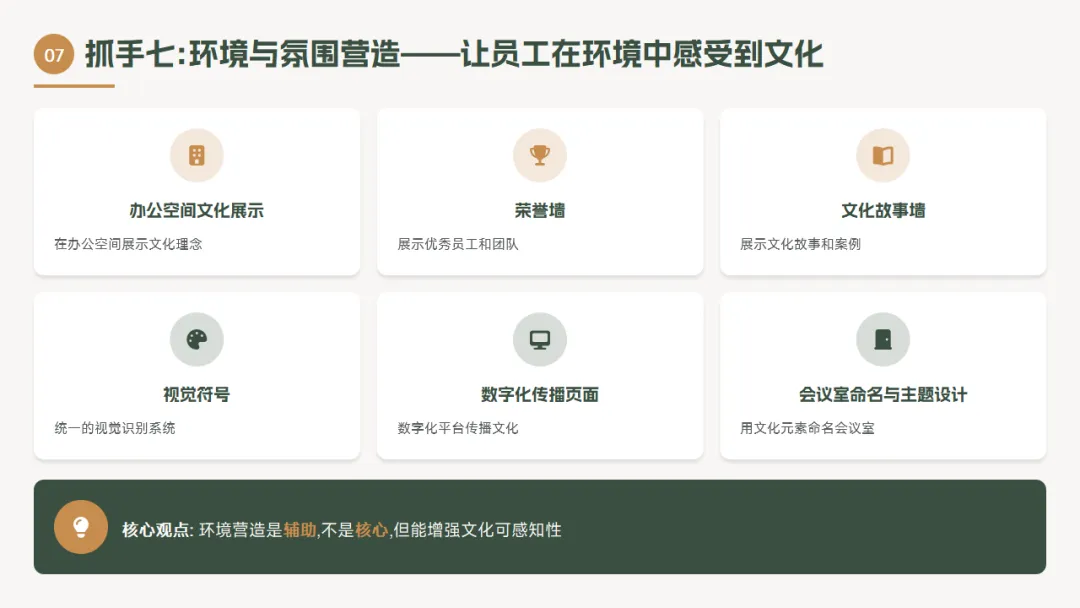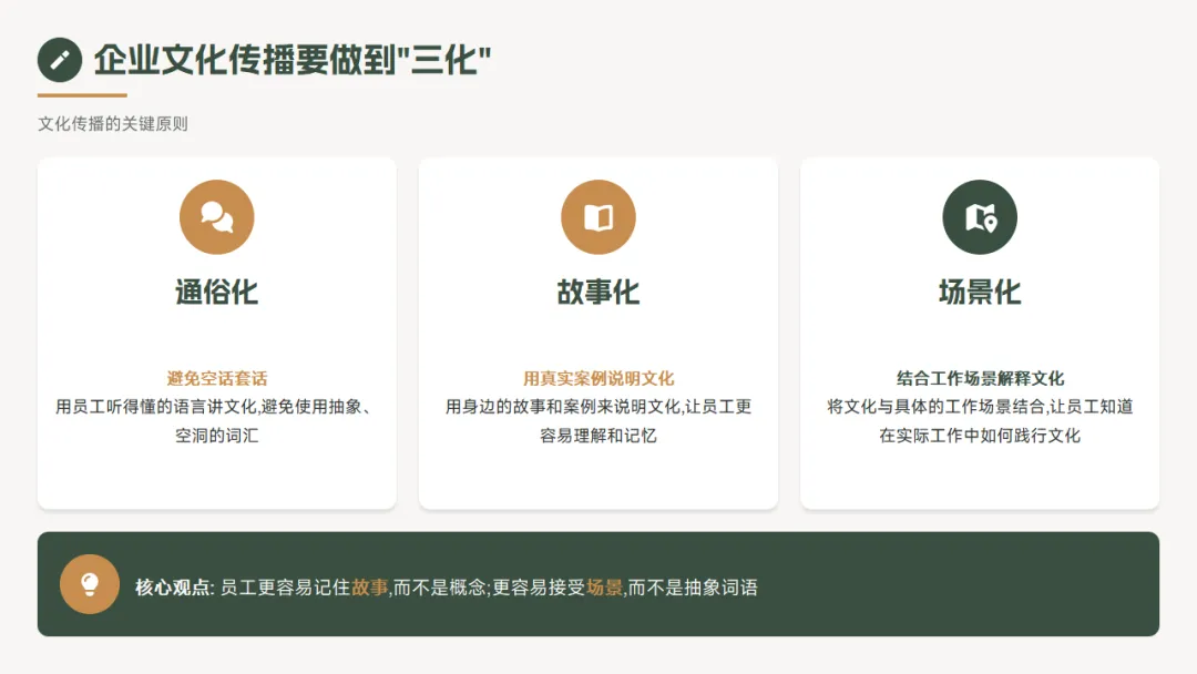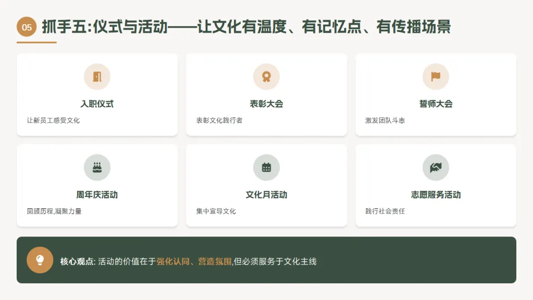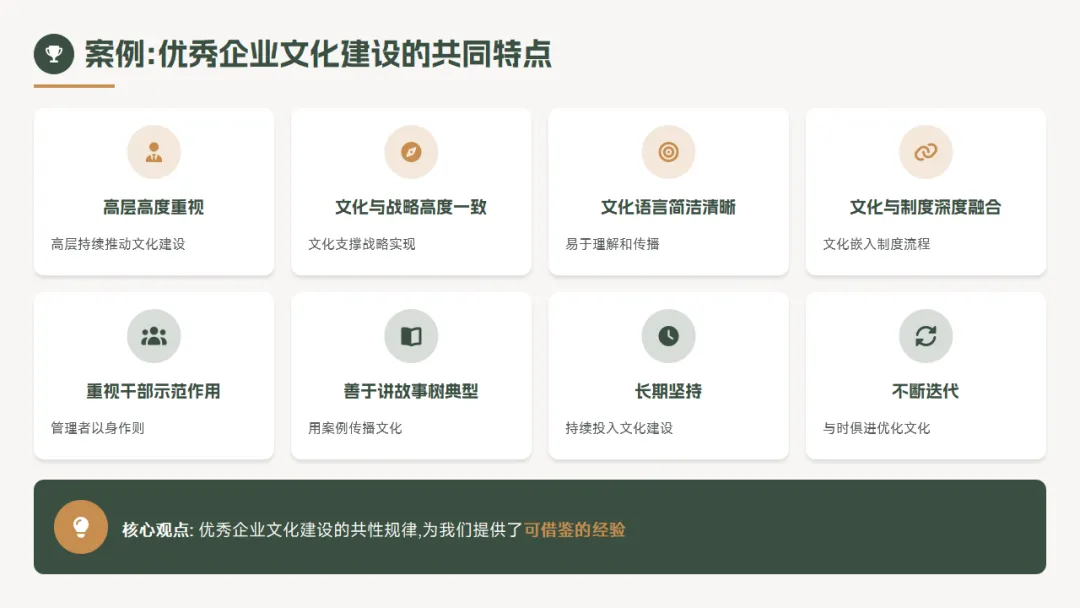 文化不是挂在墙上的,而是体现在日常行为中;不是写在手册里的,而是体现在每一次决策和行动中。