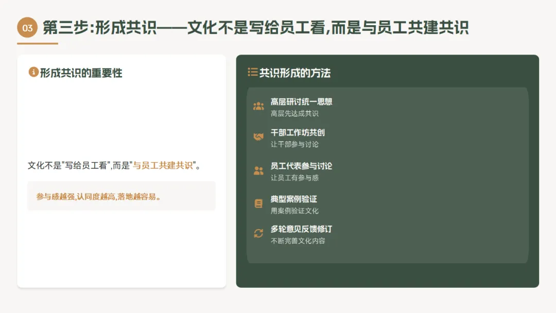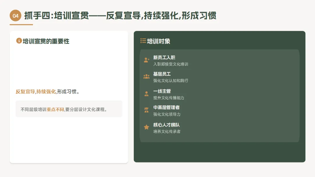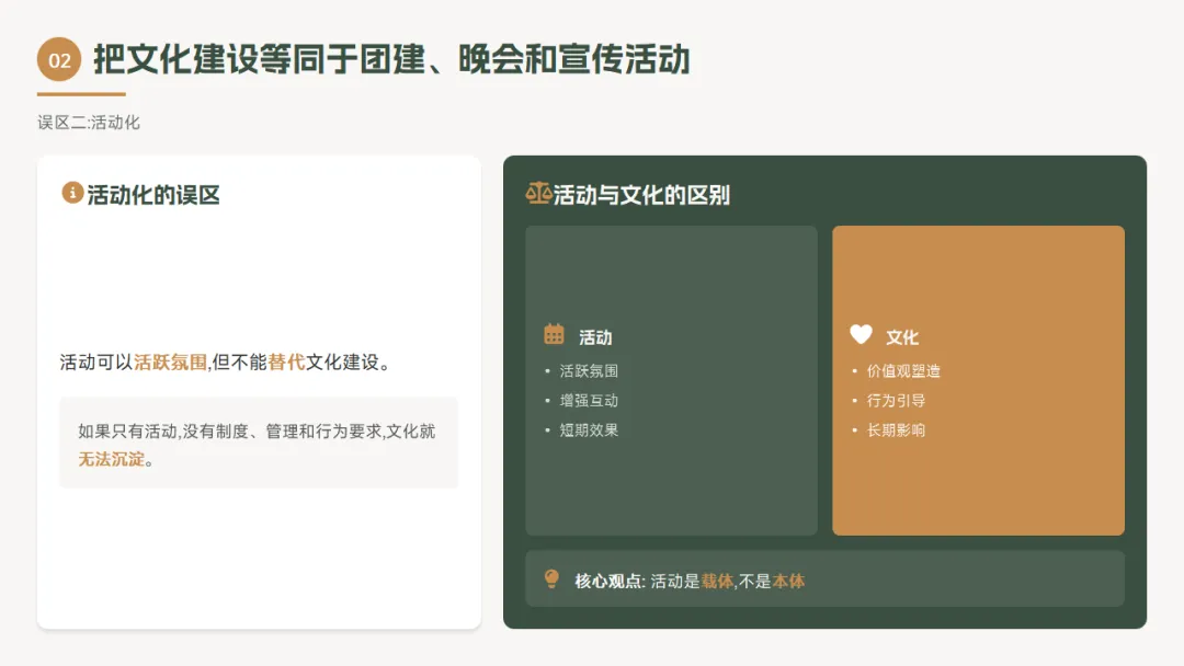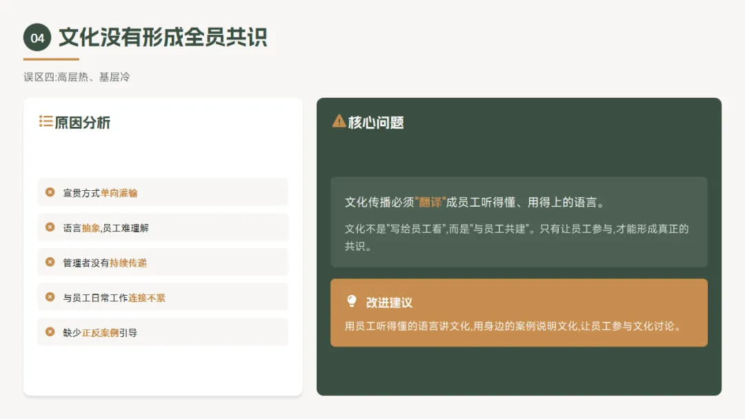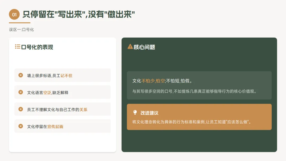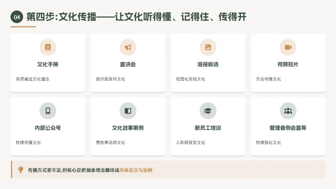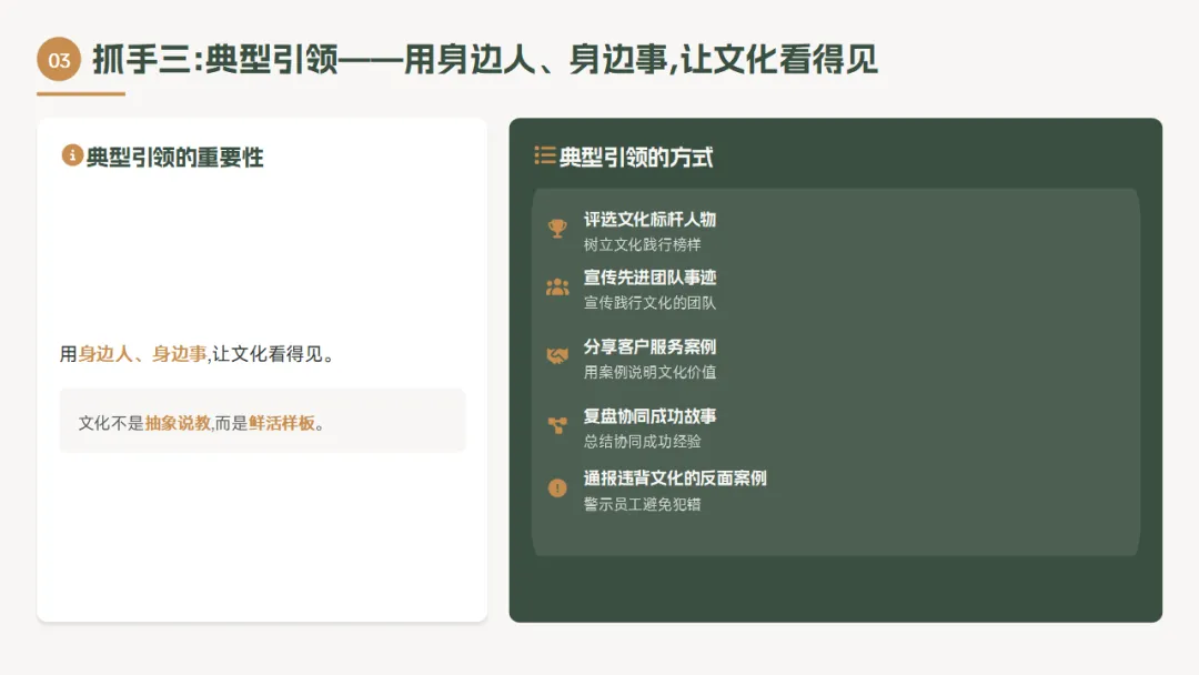 文化不是挂在墙上的,而是体现在日常行为中;不是写在手册里的,而是体现在每一次决策和行动中。