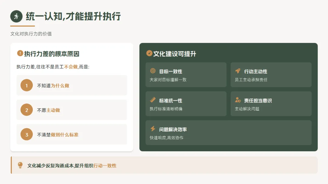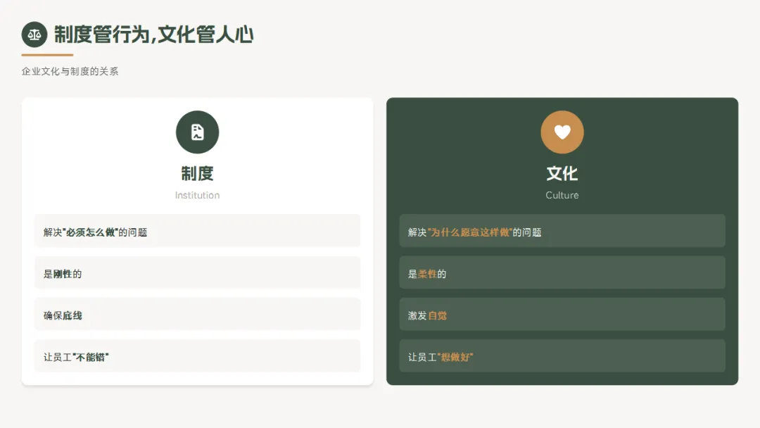 文化决定了员工如何理解制度、如何对待协作、如何面对客户、如何处理责任。制度是硬的,文化是软的,但软的东西往往决定硬的东西能否真正发挥作用。