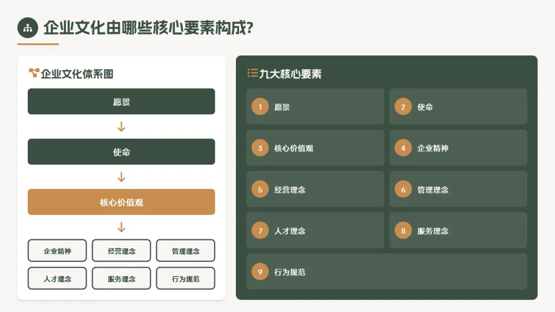 我们要系统理解企业文化建设的核心内容,掌握文化体系究竟由哪些要素构成,每一部分是什么意思,之间是什么关系。