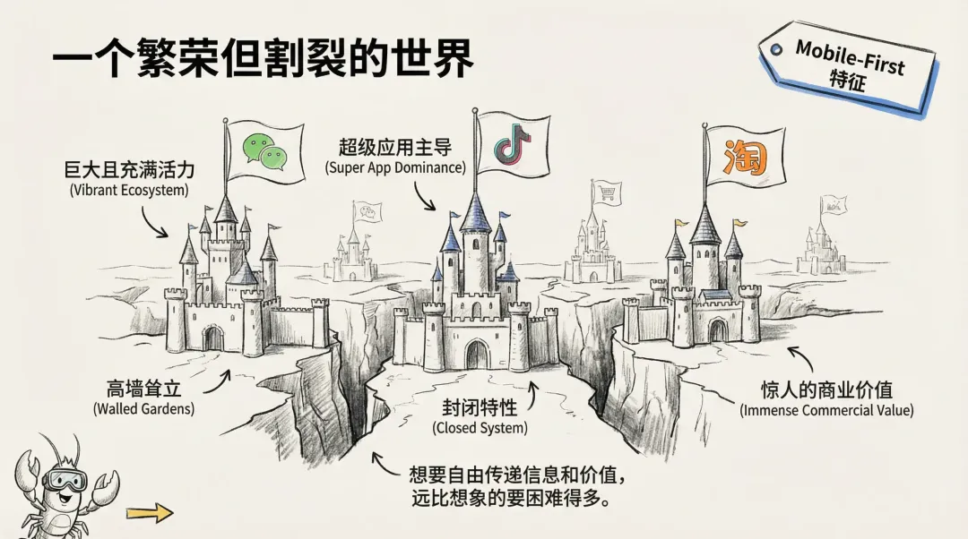 我们正处在一个由超级应用主导的数字时代。每天,数以亿计的用户在微信的私域、抖音的直播间、小红书的笔记里,创造着惊人的商业价值。这片富饶的土地,是所有品牌和创业者的必争之地。但仔细看,你会发现每一座繁华的城堡都高墙耸立,戒备森严,想要在它们之间自由地传递信息和价值,远比我们想象的要困难得多。