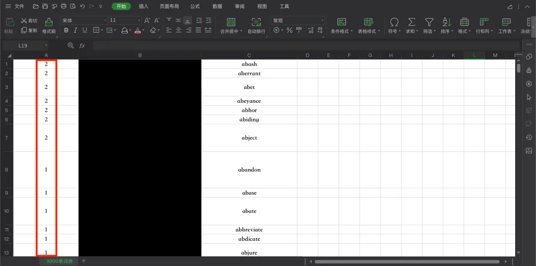 降序排序后,那些你不认识或是不确定的单词,就会出现在最前面啦!之后就可以从自己最不熟悉的单词开始背诵了。(如果在之后的背诵中,原本就不熟悉的单词还是没记住的话,可以在原有的数字上+1,并重新排序)