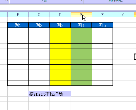 左手按shift键不松,右手按鼠标左键不松拖动列边线,可以快速让2列换位。