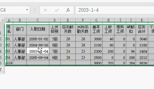 按Ctrl+A选取整个连续的表格