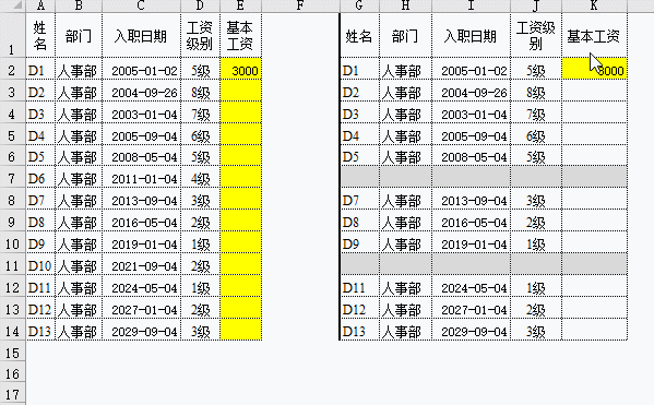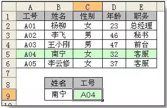 如下图,要求根据姓名查找工号