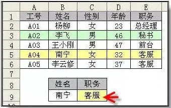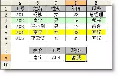 如下图所示,根据姓名查找职位