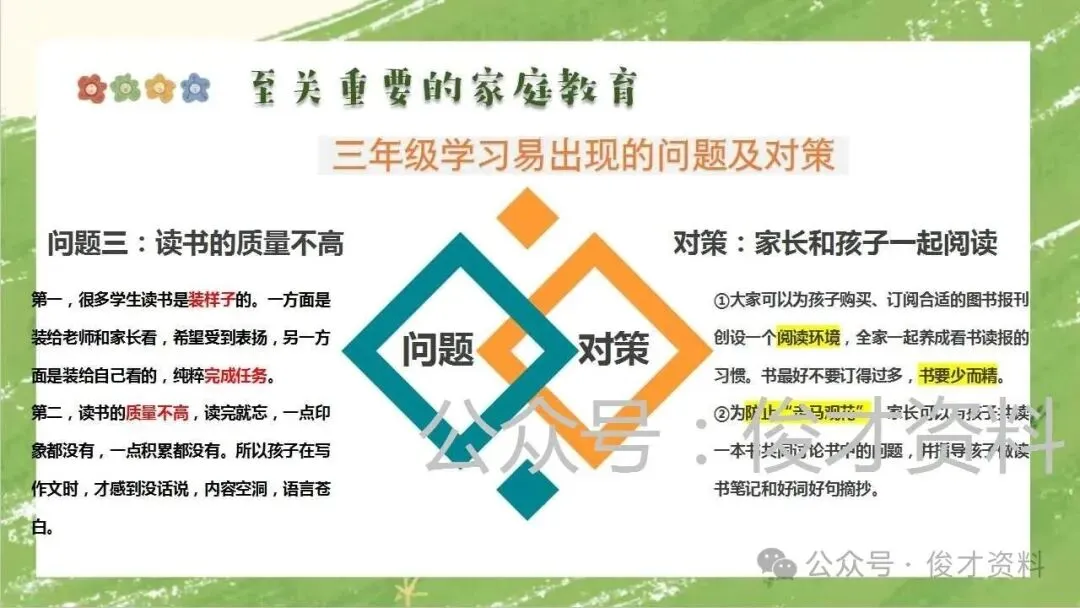 三年级下语文开学家长会ppt:三年级有点苦,但我们在一起有点甜.含发言稿