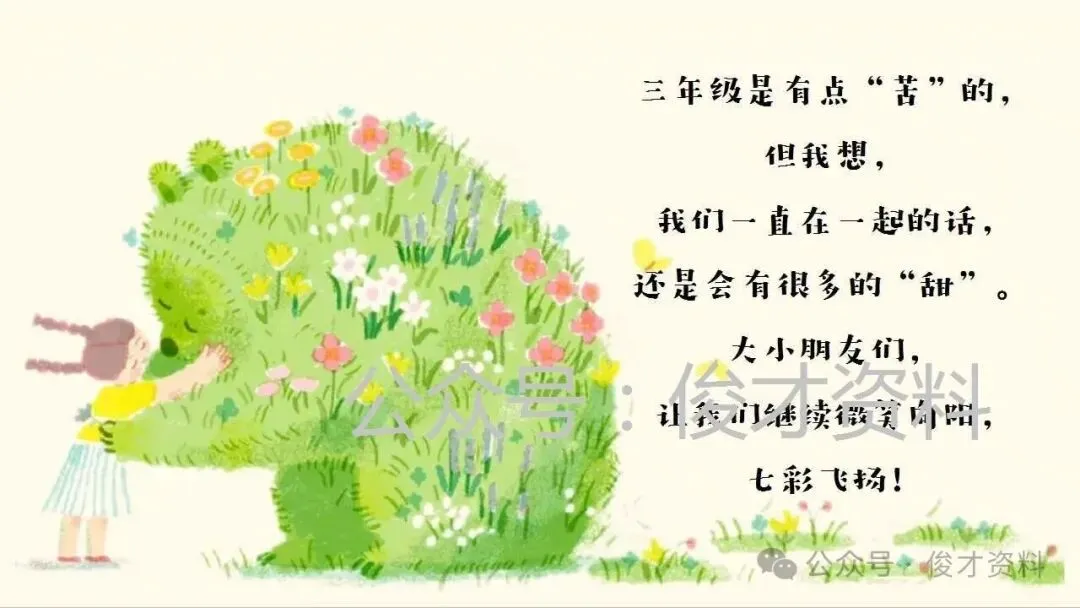 >三年级下语文开学家长会ppt:三年级有点苦,但我们在一起有点甜.含发言稿