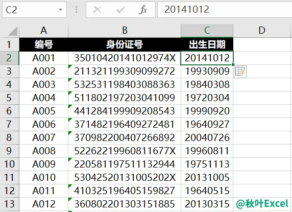 快速提取出生日期