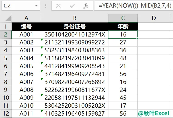 再用今年的年份-出生年份,就可以得到年龄啦~