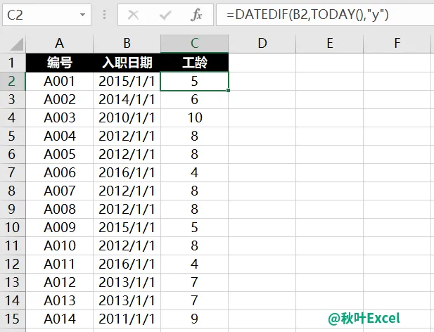 简单!用 Datedif 函数可以快速计算工龄,让还在按计算器的同事看呆!