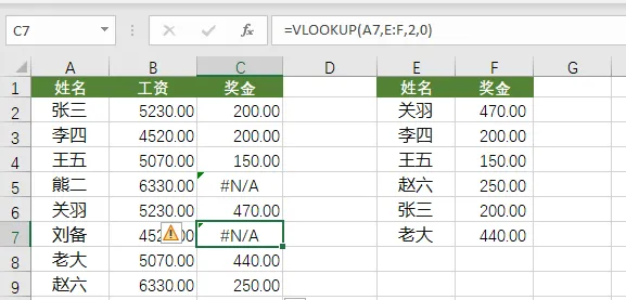 作为财务,有不少人都是习惯性用设置单元格方法保留2位小数点,而忽略了ROUND函数。将单元格的格式为常规,可以发现,金额后面有很多小数点。求和后会有一分钱差异的小尴尬。数据是常规格式,两个4.3,设置单元格以后就变成两个4,也就是我们实际看到的数据。这时就会得到4+4=9这尴尬的错误。如果这些数据是从其他用公式引用过来,可以直接在外面嵌套一个ROUND函数。如果是直接输入的,可以增加一列辅助列,这样看到的跟计算就会保持一致。用辅助列确实是一种解决方法,但有的时候行列会很多,就显得麻烦了。更完美的解决方法是直接在原来公式的单元格嵌套输入。=SUMPRODUCT(ROUND(A1:A2,0))在这里我们不能直接使用SUM函数,因为该公式为数组公式,支持数组形式的SUMPRODUCT函数更为适合。很多从系统导出来的数据是文本格式,这个时候SUMPRODUCT函数就能出手了。--的作用是将文本格式的金额转换成数值格式的金额,所以就能正常求值了。这里的0是指,查找模式为精确查找,为1就是模糊查找,也可以是TRUE或FALSE。一般情况下都是用0,也就是精确查找。其实在实际工作中,并不是人人都有奖金的,这样就导致VLOOKUP函数查找出错,这时用SUM函数求和就会出错。和VLOOKUP不同的是,VLOOKUP函数发生错误会直接报错,而IFERROR函数可以设置发生错误的返回值。=IFERROR(VLOOKUP(A2,F:G,2,0),0)以上就是今天分享的干货技巧,你Get到了吗?别忘记动手练习鸭~