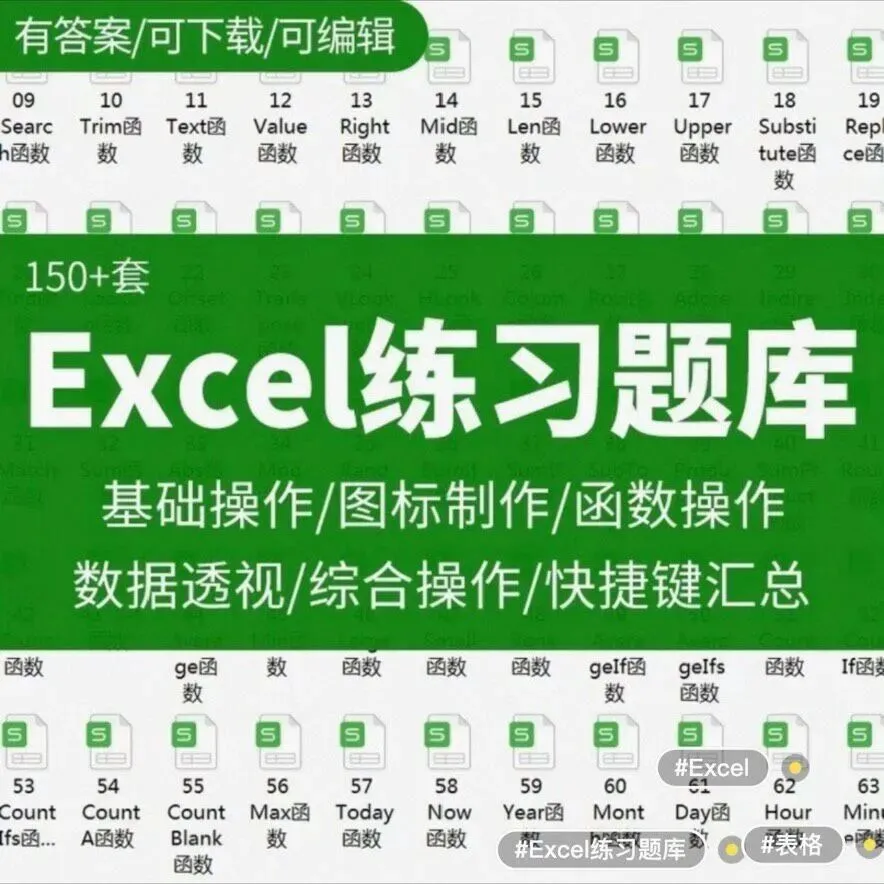 今天给大家分享一份非常实用的Excel学习资源包,内含超过150套精心整理的练习题库,内容涵盖了从基础操作到高阶应用的全方位学习路径。