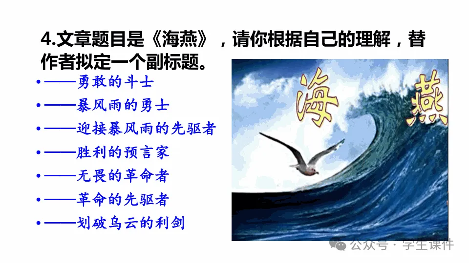 当前位置:首页>PPT>PPT课件 课文4.海燕(第二课时)(九年级语文下册)