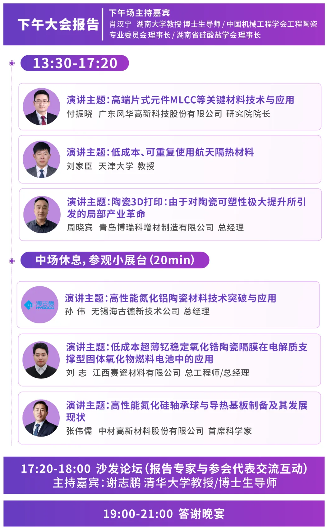 本届论坛针对市场对关键应用领域结构陶瓷、电子陶瓷、生物陶瓷、新能源陶瓷、航天航空陶瓷、半导体精密陶瓷零部件的巨大需求;邀请到国内外知名专家学者及先进陶瓷行业大咖来做精彩报告,并且与参会代表进行面对面的现场交流互动。