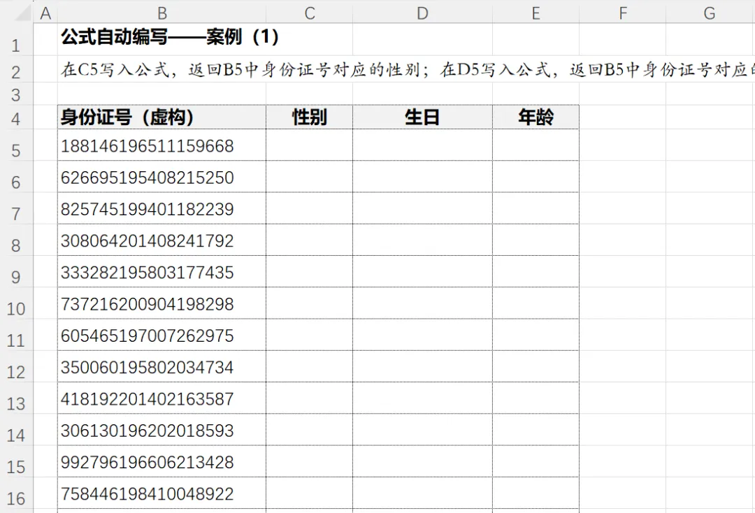 - MID(B5,17,1) → 从B5单元格的第17位开始提取1个字符(身份证第17位表示性别)