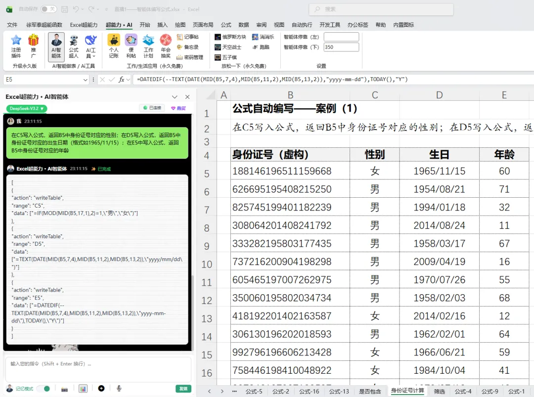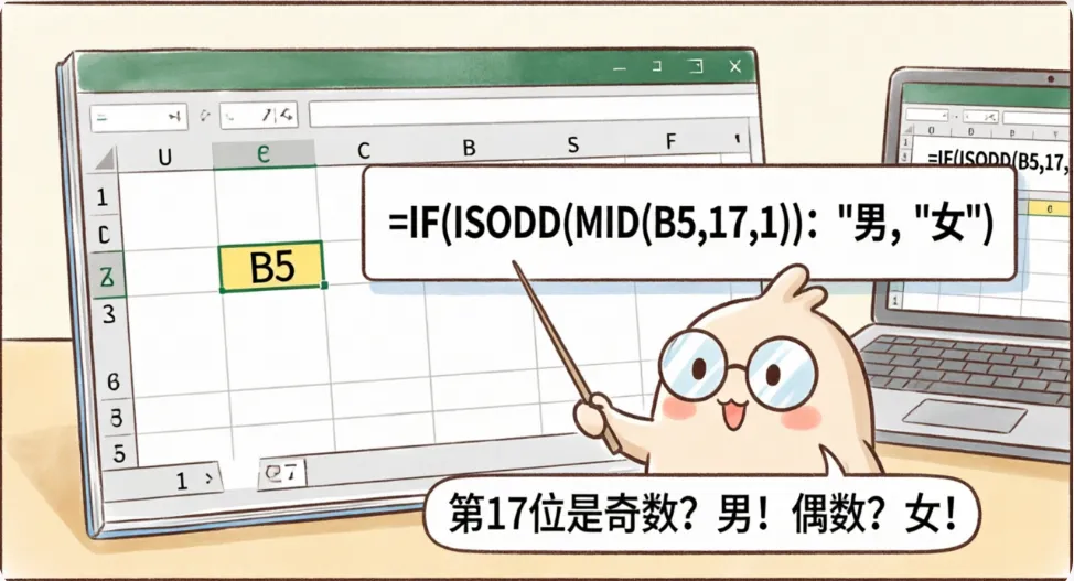 - IF() → 根据ISODD结果返回对应性别文字。