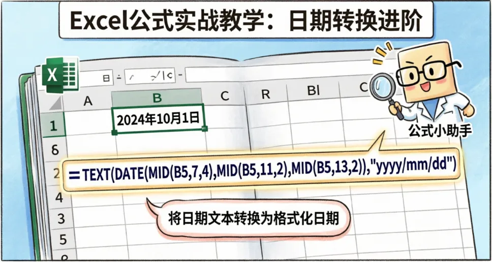 - DATE() → 将文本数字转换为标准日期值
