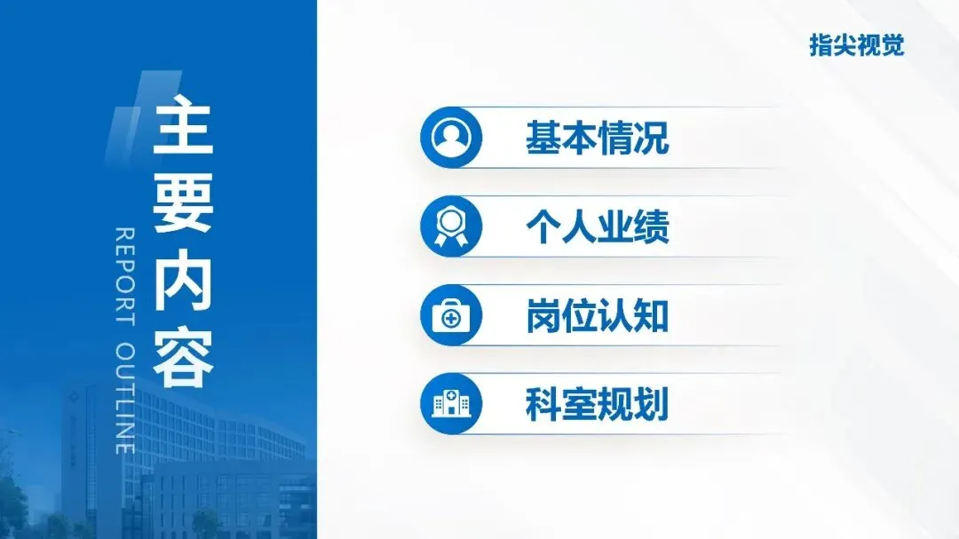 多用“数字大图”: 凡是涉及数据(治愈例数、科研经费、影响因子),尽量单独拉出来放大,配上简单的柱状图或圆环图。评委一眼就能捕捉到亮点。