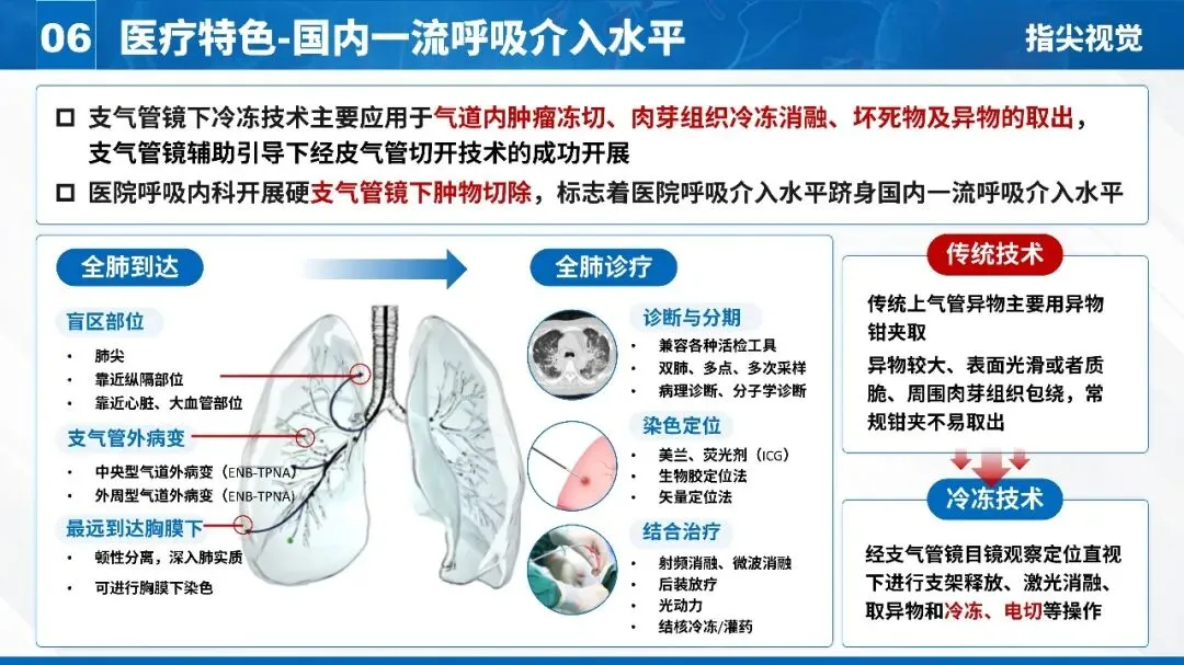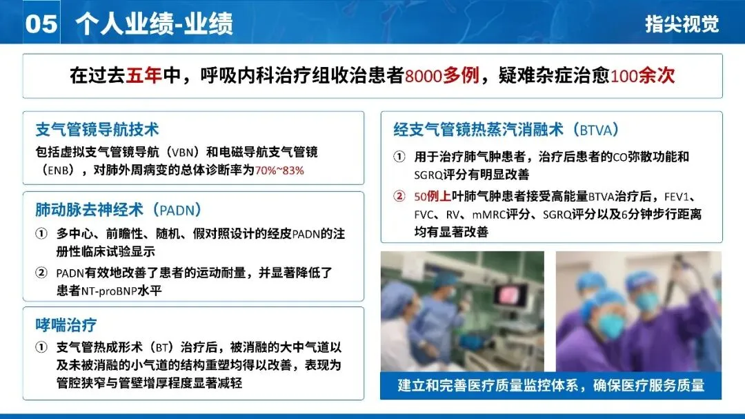 图文并茂: 每个技术旁边配了小图标(内镜、肺叶、导管),让抽象的专业术语变得直观。如果有条件,可以放一两张自己操作的照片(注意保护患者隐私),效果更佳。
