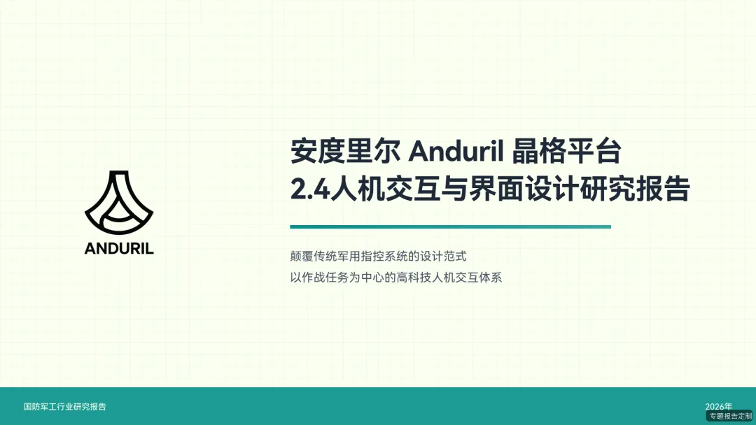 Anduril 是面向智能化战争的新一代国防承包商,也是美国 “新军工联盟” 的核心成员企业,其核心市场定位是 “以 AI 软件定义装备,以现代工业体系重塑兵工厂”,是全球首家以军用 AI 操作系统为核心底座,实现陆、海、空、天、水下全域覆盖的全栈式智能化国防科技企业。
