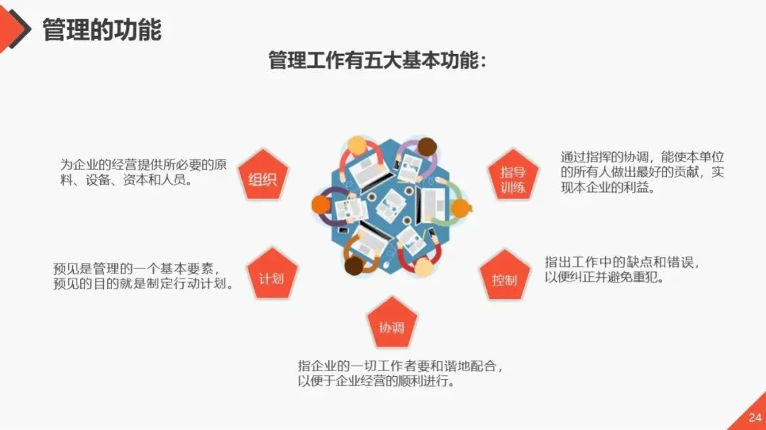 管理的本质是通过他人完成工作,基层干部的日常管理工作,围绕计划、组织、指导训练、控制、协调五大核心功能展开,这五大功能环环相扣,构成了基层管理的基本框架,也是基层干部必须掌握的基础管理能力。