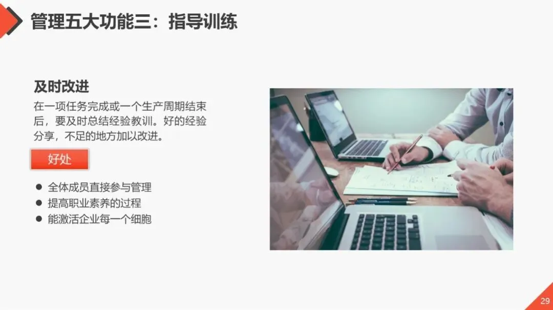 同时,要做好工作后的总结复盘,将好的经验在团队内分享,对不足的地方及时改进,让指导训练成为员工持续成长的动力,也让团队能力不断提升。