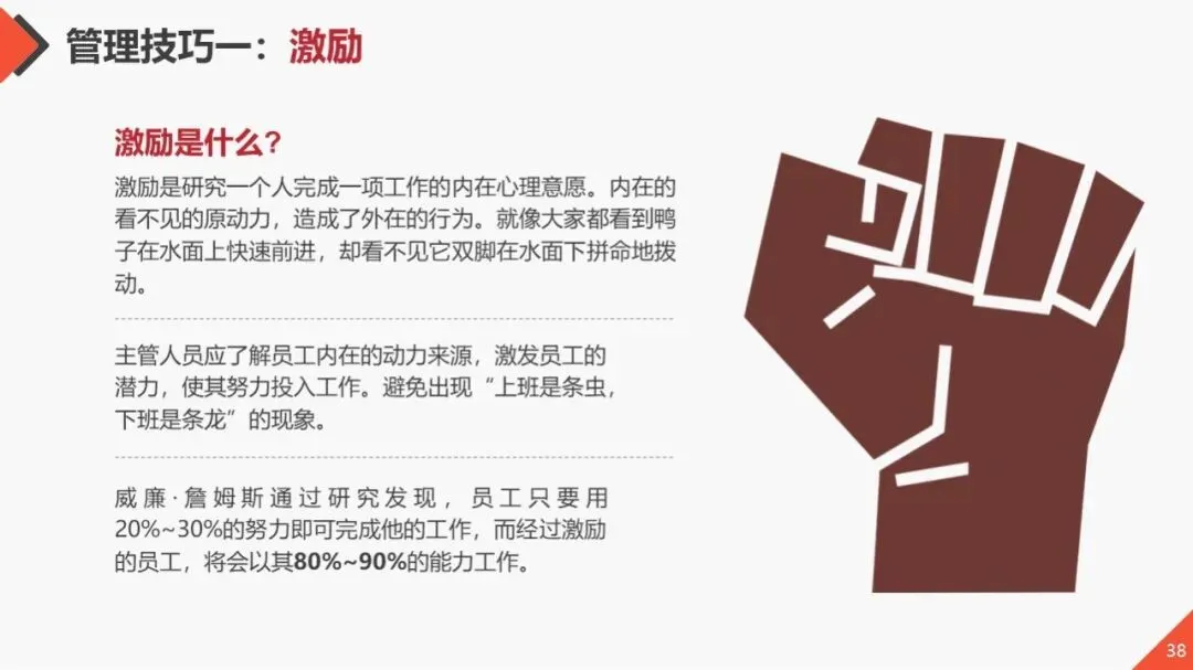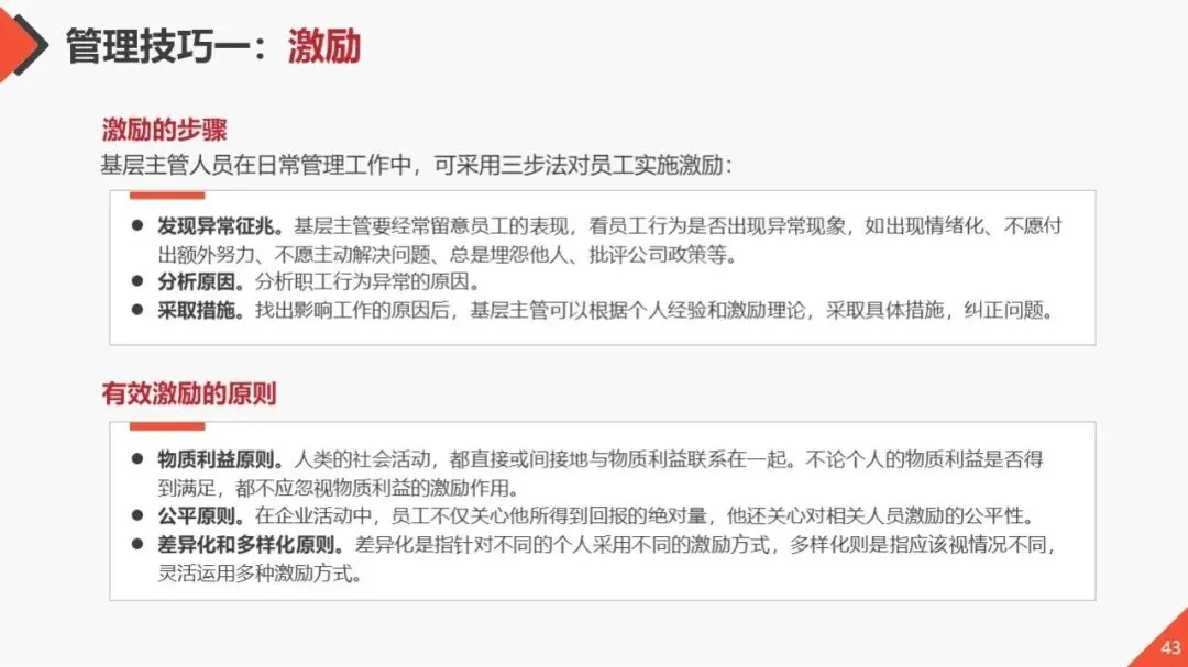 如果说管理五大功能是基层干部的 “基础课”,那么激励、授权、时间管理三大核心技能,就是基层干部的 “进阶课”。