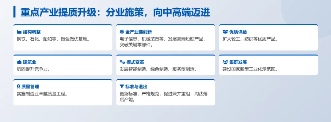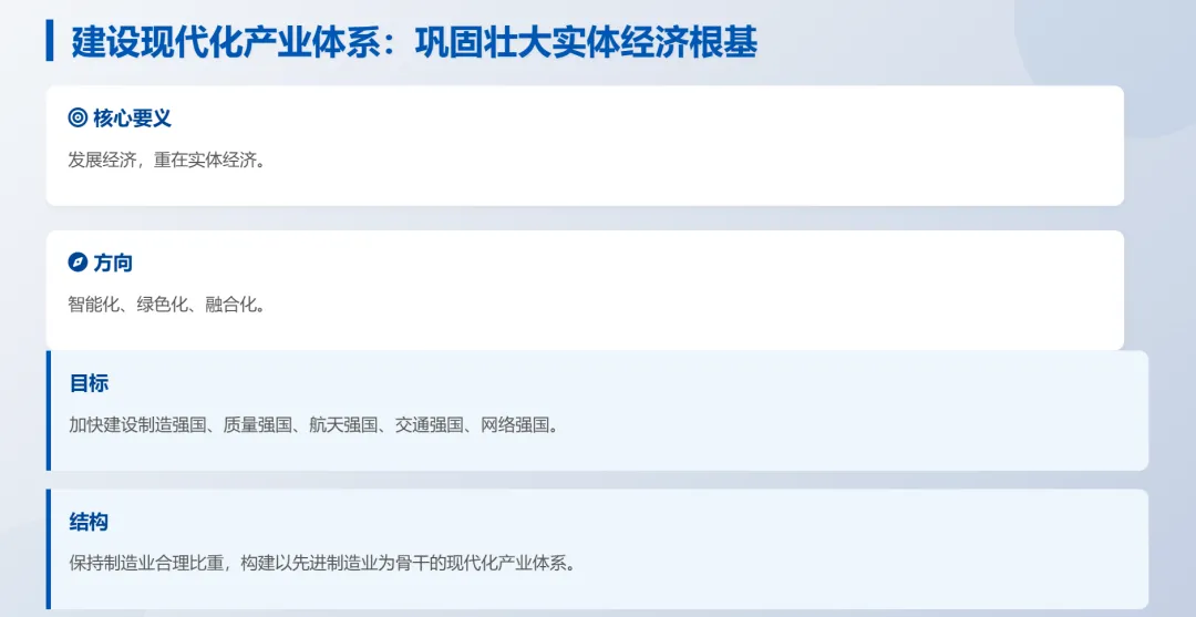 日前披露的“十五五”规划纲要草案第二篇明确提出,要坚持把发展经济的着力点放在实体经济上,以智能化、绿色化、融合化为方向,巩固壮大实体经济根基。草案强调,将加快建设制造强国、质量强国、航天强国、交通强国、网络强国,并保持制造业合理比重,构建以先进制造业为骨干的现代化产业体系。针对这一核心篇章,『制造前沿』已推出专题PPT解读,详细梳理第二章的重点内容与发展路径。