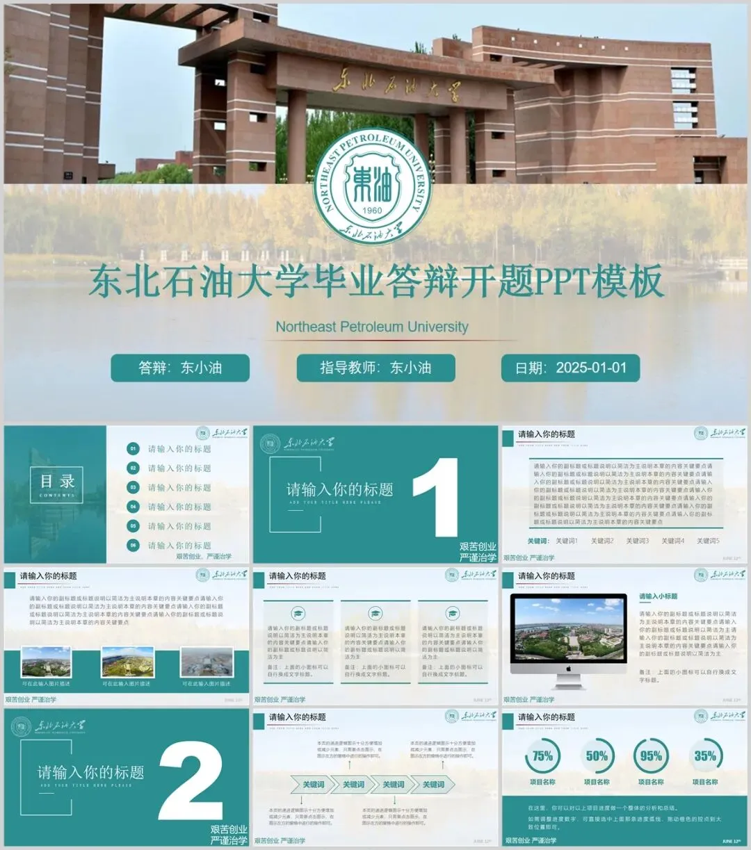 “东北石油大学”专属PPT模板来了~