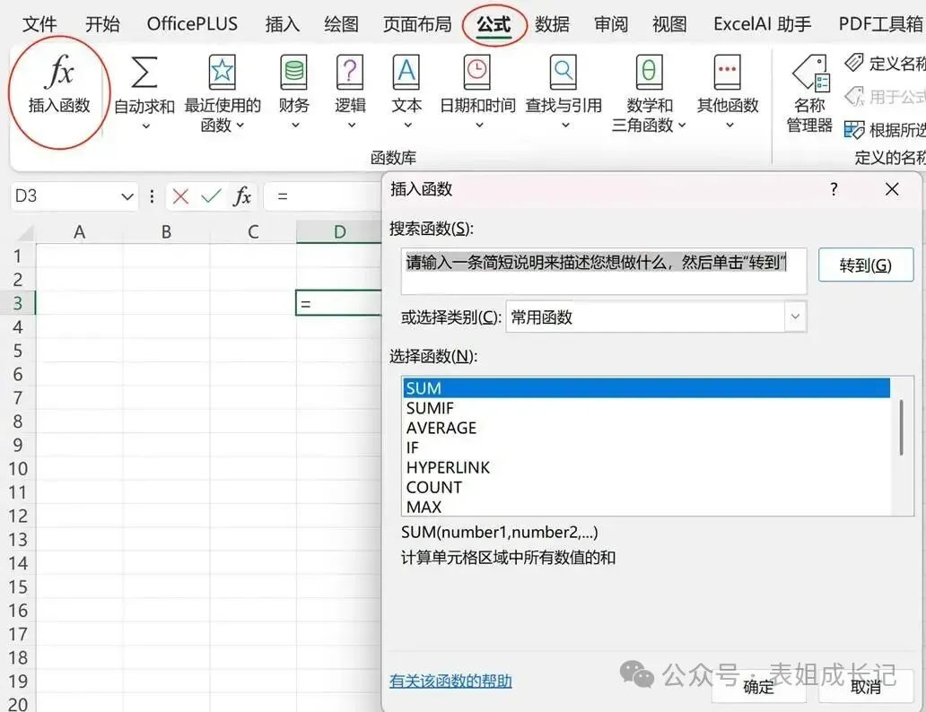 其实我们大多数常用的函数,都可以在功能区中的【公式】选项中找到。