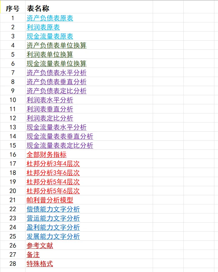 【财务报表分析模板资料】财务报表分析Excel模板资料(包括偿债能力+盈利能力+营运能力+杜邦分析等)
