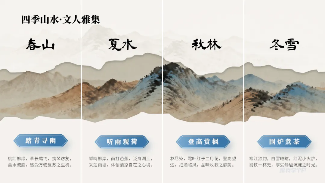 最后给内容营造层次对比,上下布局,一页典雅的中国风页面就做好了。