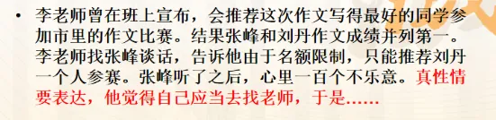 学生5:如果李老师告诉张峰原因了,确实是张峰不足的,他估计情绪也平静了。