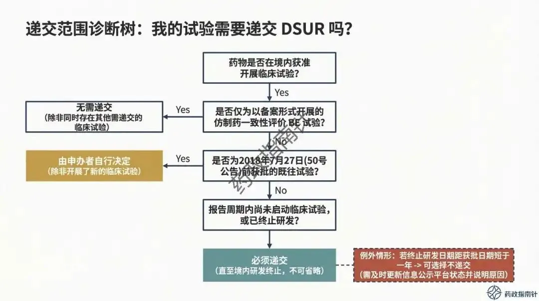 递交边界的精准划定:明确了境内获准临床试验的递交范围,特别是针对仿制药一致性评价BE试验、2018年前获批的老项目以及研发终止等特殊情形的递交判定 。