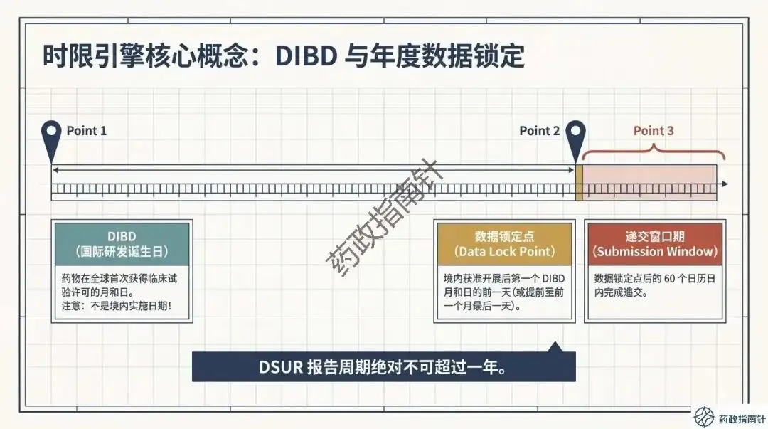 时限引擎的深度解析:详细解读DSUR的报告起始时间(国际研发诞生日期,IBD)与截止时间,确保申办者不再错过关键的时间节点 。