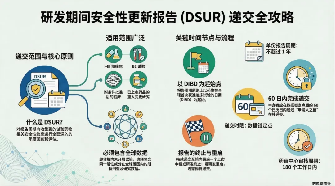 在药物研发的全生命周期中,安全性评估不仅是受试者保护的基石,更是监管合规的红线。自2019年我国实施《ICH E2F:研发期间安全性更新报告指导原则》以来,DSUR已成为申办者每年必须面对的一场“年度大考” 。然而,在实际操作中,如何将军际标准与中国区域监管要求(如2020年发布的《管理规范》)深度融合,依然是许多RA、PV及临床申办方的痛点 。