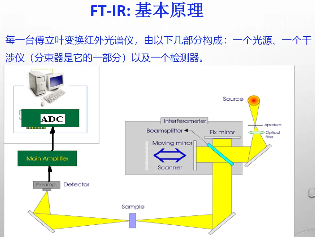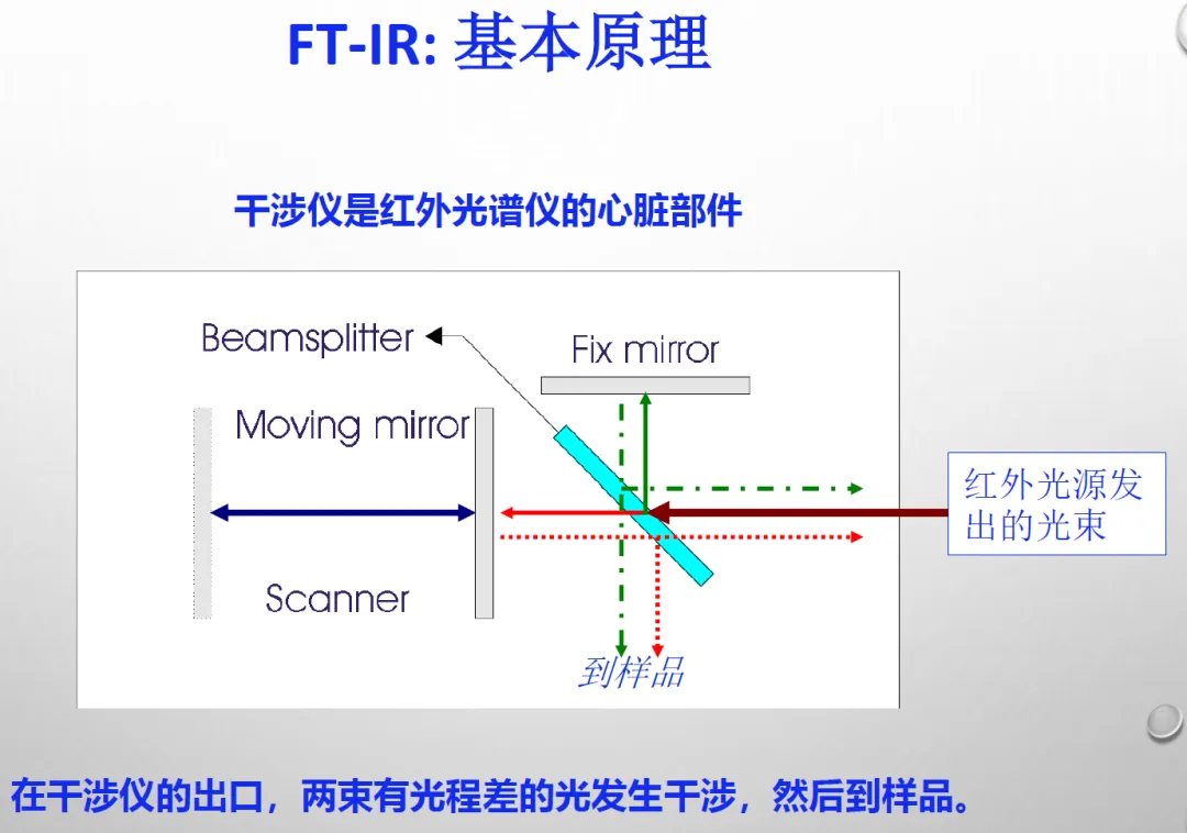 详细拆解傅立叶变换红外光谱仪的核心结构——光源、干涉仪、检测器,重点说明干涉仪作为仪器心脏的功能,以及分束器的作用: