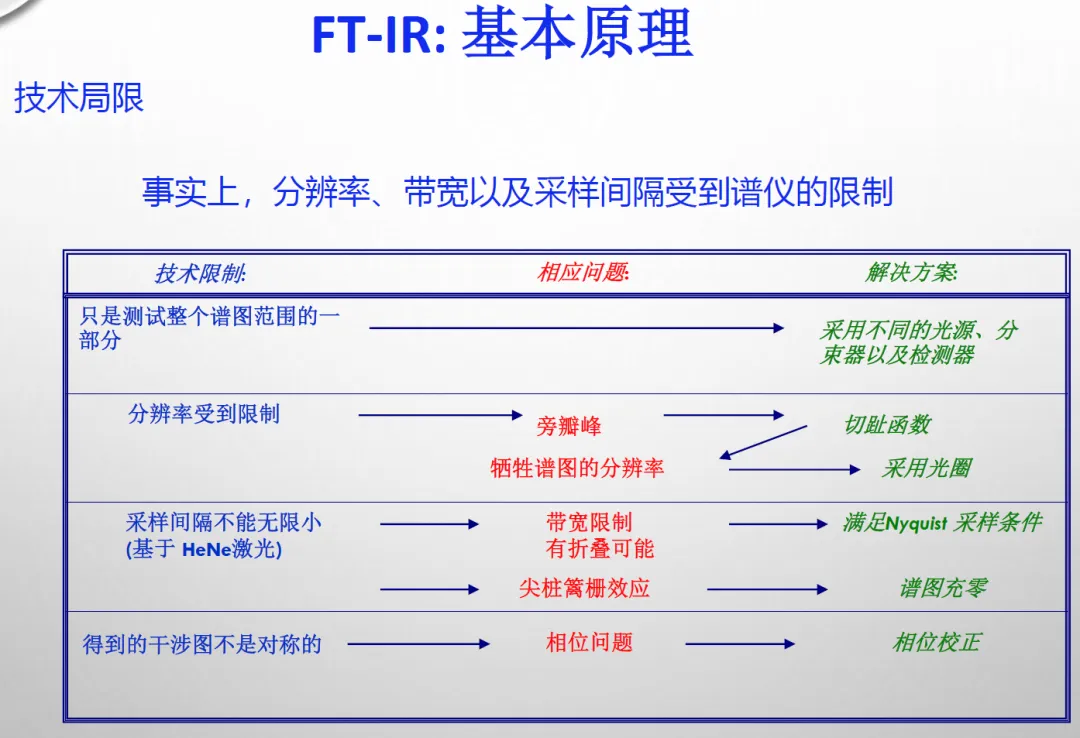 同时讲解单色光/非单色光、动镜干涉图相关知识,拆解技术局限、谱图范围、分辨率、切趾干涉图及数据采集、测试中的常见问题: