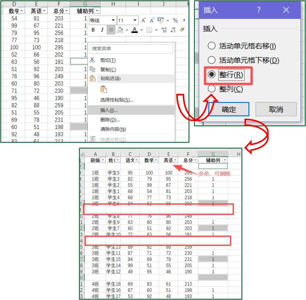 ①数据排序,同一班级/部门/产品的数据放在一起;