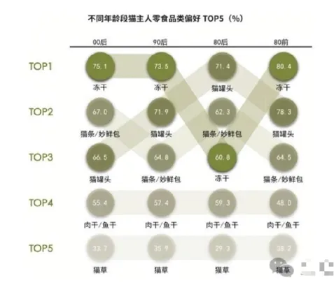 80后猫主人更倾向购买零食罐头、猫条/妙鲜包