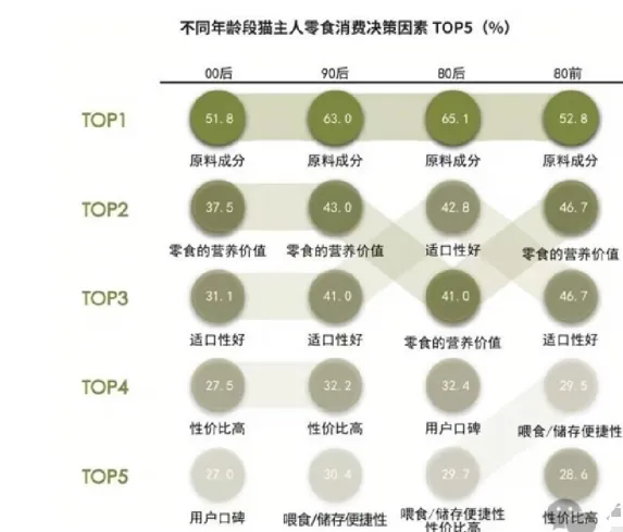 猫主人所关注的零食消费决策因素更加多维度
