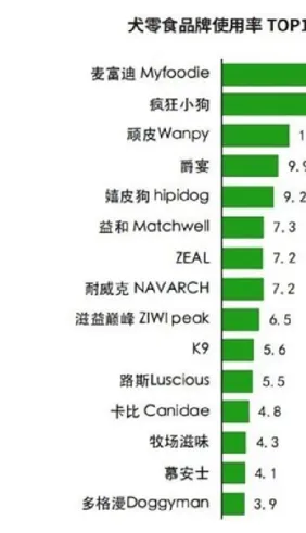 犬零食品牌中,中国品牌占主导地位