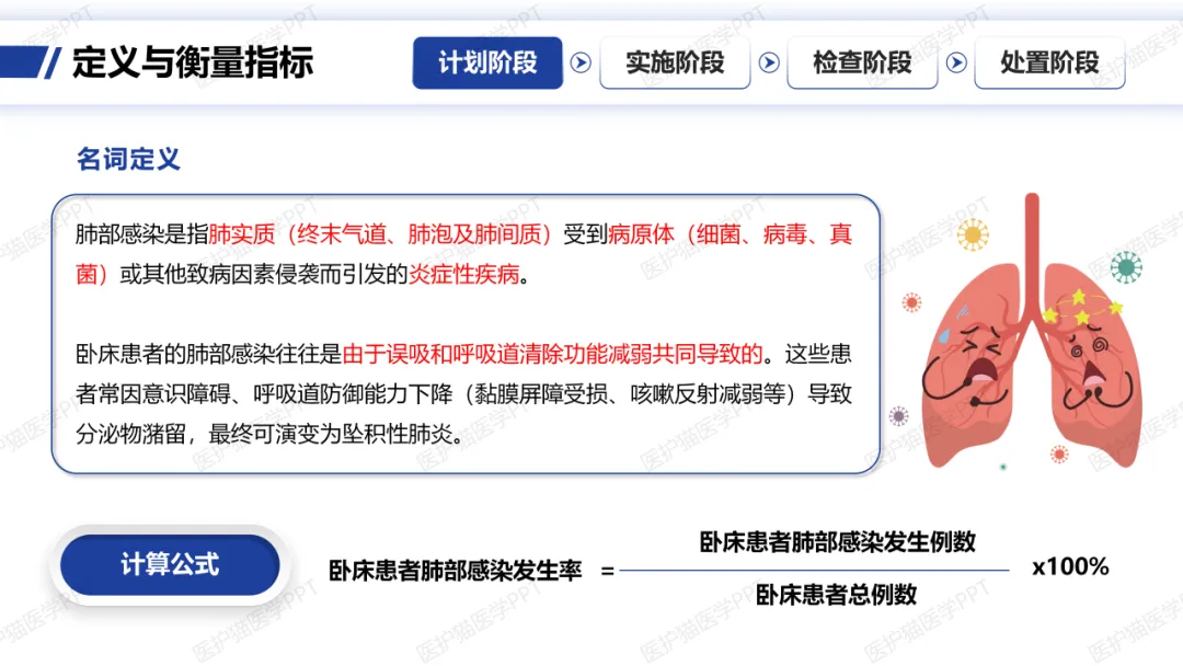 严重的肺部感染更可能引发呼吸衰竭,显著增加病死率和住院时间。因此,如何降低卧床患者肺部感染发生率的研究重点。